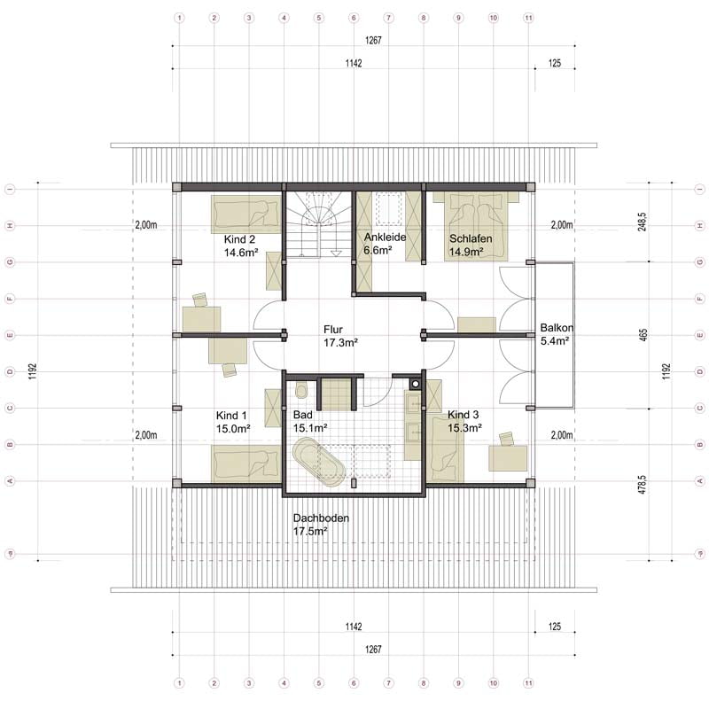 Der großzügig gestaltete Wohnbereich mit Erker und Luftraum lässt viele Gestaltungsmöglichkeiten zu. Hierzu zählt vor allem die schöne helle Küche mit direktem Blick in den Garten. Das Dachgeschoss, welches über eine gerade Treppenanlage zu erreichen ist, überzeugt unter anderem mit seiner weiträumigen Badlandschaft, in die auch eine Sauna eingebaut werden könnte.